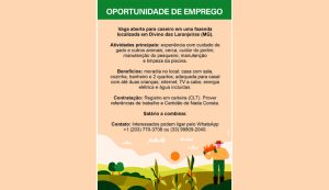Vaga aberta para caseiro em uma fazenda localizada em Divino das Laranjeiras (MG).