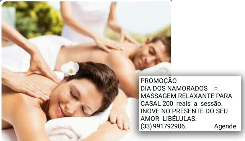 DIA DOS NAMORADOS = MASSAGEM RELAXANTE PARA CASAL: 200 reais a sessão.